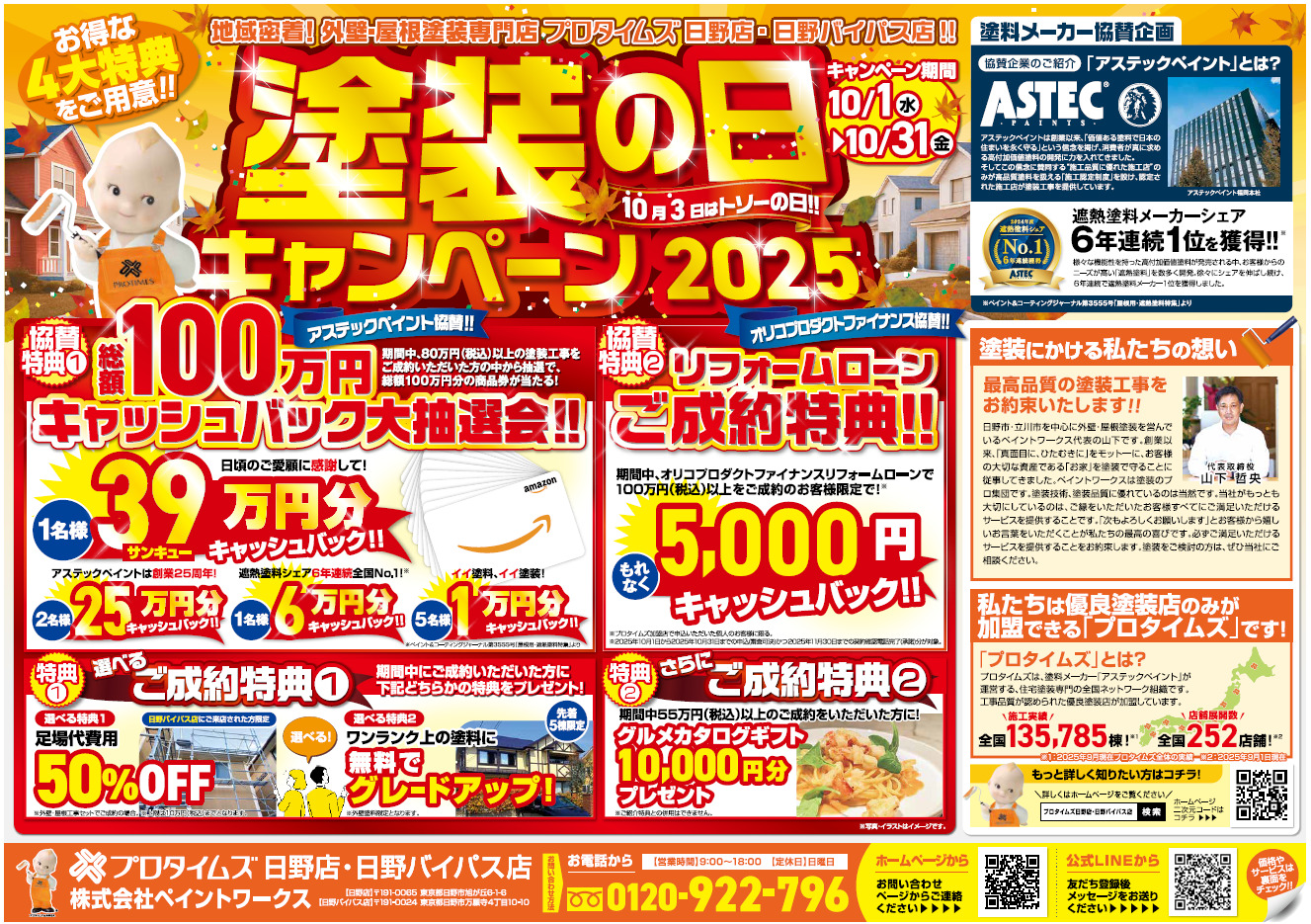 はじめまして、株式会社ペイントワークス(プロタイムズ日野店)代表の山下と申します。