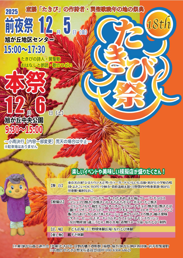🔥🍂🍠 18th たきび祭 🍠🍂🔥 2025年12月12日(金) 🔥🍂🍠 18th たきび祭 🍠🍂🔥 プロタイムズ日野店 株式会社ペイントワークス 弊社のブログをご覧いただき、ありがとうございます_(._.)_💕 12月5日(前夜祭) 12月6日(本祭) 2日間、旭・・・