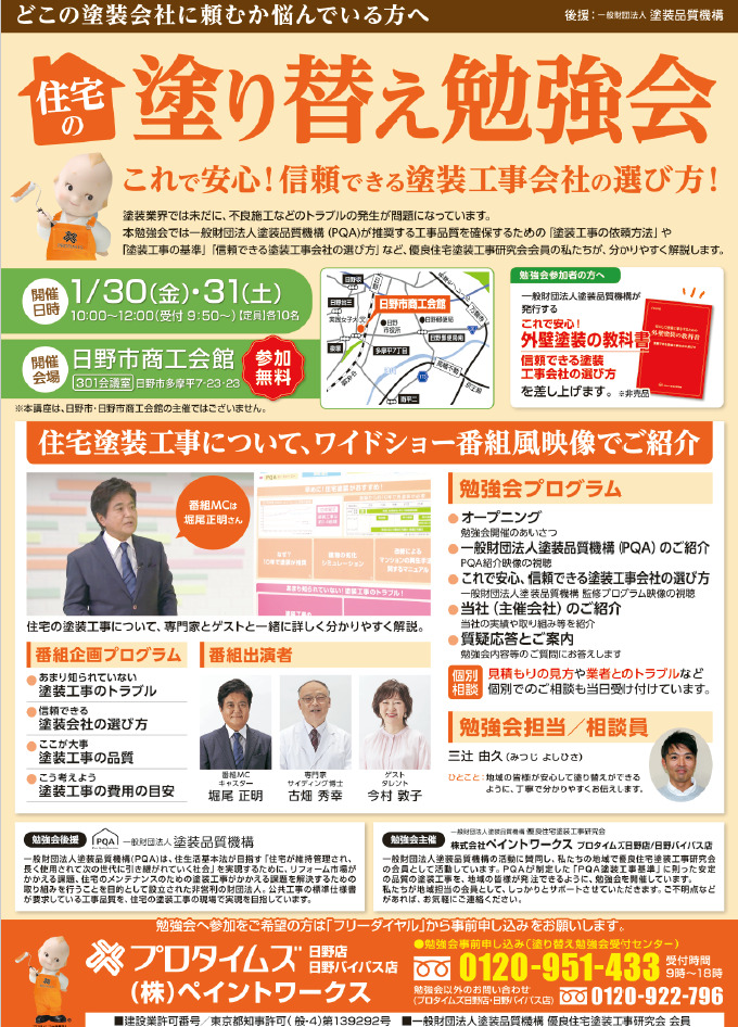 【申込方法】 弊社HP💻イベント情報(1/30・1/31)よりお申込みいただくか、塗替え勉強会受付センター☎️0120-951-433までご連絡をお願いいたします😊