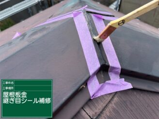 棟板金継ぎ目シール補修 プライマー塗布