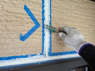 サッシ周りシーリング補修 ならし・仕上げ
