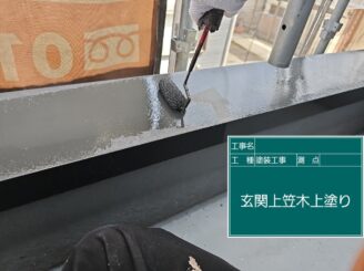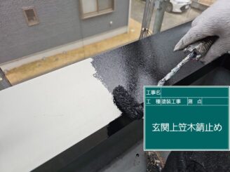 玄関上笠木 錆止め塗布