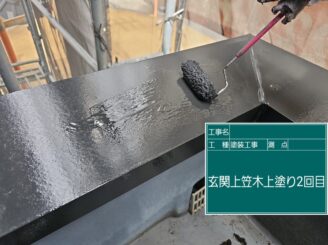 玄関上笠木 上塗り2回目 チャコール