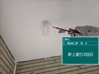 軒天井 上塗り2回目 クールホワイト