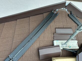 下屋根 棟板金下地取付