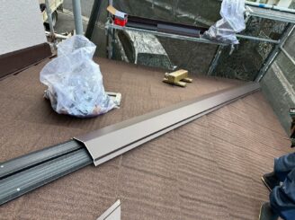 下屋根 雨押え板金取付